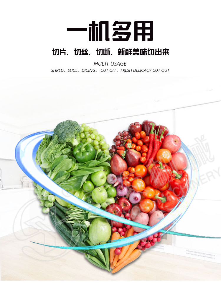 切菜机用于硬、软件各种根、茎、叶类蔬菜,萝卜、土豆、水果、薯类加工。