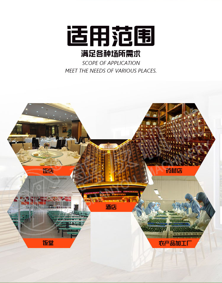可以根据您的需要另外配置一些设备,如菜馅机、切丝切丁机,土豆脱皮机,切瓜果机,脱水机,洗米机等。